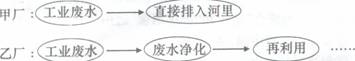 33.下面为甲、乙两家造纸厂处理工业废水的图示:![]()