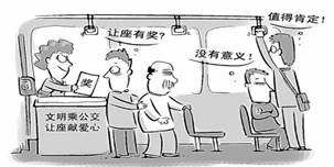面对“让座有奖”活动,不同的人有不同的看法,你的观点呢?请说明理由。(4分)
