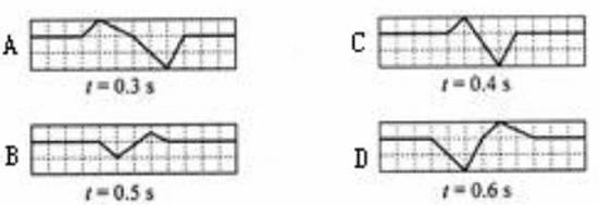 11. 两个不等幅的脉冲波在均匀介质中均以 1.0m/s的速率沿同一直线相向传播,t = 0时刻的波形如图所示,图中小方格的边长为 0.1m。则以下不同时刻,波形正确的是