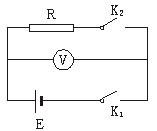 (2)图中E为直流电源,R为已知电阻,○ V为理想电压表,其量程略人于电源电动势,K1和K2为开关。现要利用图中电路测量电源的电动势E和内阻r,试写出主要实验步骤及表达式。