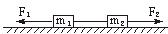 如图所示,两个用轻线相连的位于光滑水平面上的物块,质量分别为m1和m2,拉力F1和F2方向相反,与轻线沿同一水平直线,且F1>F2。试求在两个物块运动过程中轻线的拉力T。