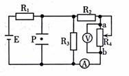 9.如图所示,平行金属板中的带电质点P处于静止状态,不考虑电流表和电压对电路的影响,当滑动变阻器R4滑片向b端移动时 ( )