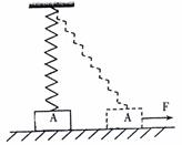 12.如图所示,一物体A置于光滑的水平面上,一弹簧下端固定在物体上,上端固定在天花板上,此时弹簧处于竖直且为自然长度。现对物体施加一水平拉力,使物体沿水平面向右缓慢运动,运动过程中物体没有离开水平面,则关于此运动过程中物体的受力情况,下列说法正确的是 ( )