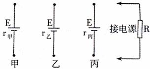 13.如图所示,现有甲、乙、丙三个电动势E相同而内阻r不同的电源。有这三个电源分别给定值电阻R供电,已知它们的阻值大小关系为R > r甲 > r乙 > r丙,则将R先后接在这三个电源上时的情况相比较,下列说法正确的是 ( )
