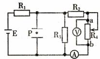 9.如图所示,平行金属板中的带电质点P处于静止状态,不考虑电流表和电压表对电路的影响,当滑动变阻器R4滑片向b端移动时 ( )