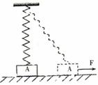 12.如图所示,一物体A置于光滑的水平面上,一弹簧下端固定在物体上,上端固定在天花板上,此时弹簧处于竖直且为自然长度,现对物体施加一水平拉力,使物体沿水平面向右缓慢运动,运动过程中物体没有离开水平面,则关于此运动过程中物体的受力情况,下列说明正确的是 ( )