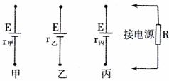 13.如图所示,现有甲、乙、丙三个电动势E相同而内阴r不同的电源。用这三个电源分别给定值电阻R供电,已知它们的阻值大小关系为R>r甲>r乙>r丙,则将R先后接在这三个电源上时的情况相比较,下列说法正确的是 ( )