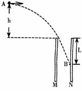 22.(12分)如图所示,两块平行金属板M、N竖直放置,两板间的电势差U=1.5×103V,现将一质量m=1×10-2kg、电荷量q=4×10-5C的带电小球从两板上方的A点以V0=4m/s的初速度水平抛出(A点距两板上端的高度h=20cm),之后小球恰好从靠近M板上端处进入两板间,沿直线运动碰到N板上的B点。不计空气阻力,取g=10m/s2cy。求: