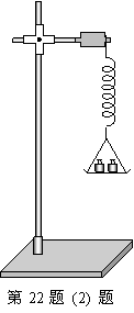 (2)(9分)在“研究弹力和弹簧伸长的关系”的实验中,某同学将弹簧的一端固定在铁架台上,另一端挂一只小盘,铁架台的竖直杆上固定一个可以上下移动的标志物,作为计时标志,让小球在竖直方向离开平衡位置放手后,小盘在竖直方向做简谐运动(此装置也称竖直弹.簧振子),如图所示,这位同学想用在“探究弹力和弹簧伸长的关系”的实验中所学的科学方法,探究此竖直弹簧振子做简谐运动的周期T与质量m的关系。