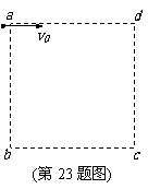 23.(18分)如图所示,abcd为一正方形区域,正离子束从a点沿ad方向以一定速度射入,若在该区域中加上一个沿ab方向的匀强电场,电场强度为E,则离子束刚好从c点射出;若撒去电场,在该区域中加上一个垂直于abcd平面向外的匀强磁砀,磁感应强度为B,则离子束也刚好从c点射出,设离子束之间的相互作用可忽略,试求离子入射速度