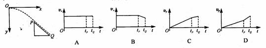 如图所示,水平抛出的物体,抵达斜面上端P处,其速度方向恰好沿着斜面方向,然后沿斜面无摩擦滑下,下列图像物体沿x方向和y方向运动的速度--时间图像,其中正确的是