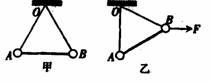 如图甲所示的装置中,OA、OB是两根轻绳,AB是轻杆,它们构成一个正三角形,在A、B两处分别固定质量均为m的小球,此装置悬挂在O点,开始时装置自然下垂,现对小球B施加一个水平力F,使装置静止在如图乙所示的装置,此时OA竖直,设在甲图所示的状态下OB对小球B的作用力大小为T,在图乙所示的状态下OB对小球B的作用力大小为T’,则下列判断正确的是
