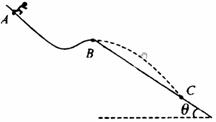 23.(16分)如图,质量m=60kg的高山滑雪运动员,从A点山静止开始沿雪道滑下,从B点水平飞出后又落在与水平面成倾角θ=37°的斜坡上C点.己知AB两点间的高度差为h=25m,B、C两点间的距离为S=75m,(g取l0m/s2 sin37°=0.6,cos37°=0.8),求: