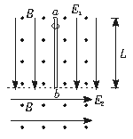 20.如图所示,水平虚线上方有场强为E1的匀强电场,方向竖直向下,虚线下方有场强为E2的匀强电场,方向水平向右;在虚线上、下方均有磁感应强度相同的匀强磁场,方向垂直纸面向外,ab是一长为L的绝缘细杆,竖直位于虚线上方,b端恰在虚线上,将一套在杆上的带电小环从a端由静止开始释放,小环先加速而后匀速到达b端,环与杆之间的动摩擦因数μ=0.3,小环的重力不计,当环脱离杆后在虚线下方沿原方向做匀速直线运动,求:
