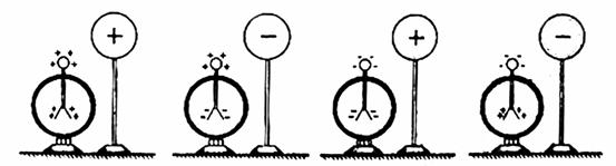 10.使用电的金属球靠近不带电的验电器,验电器的箔片开。下列各图表示验电器上感应电荷的分布情况,正确的是