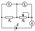 (b)当R2为定值时,电压表V2的示数与电流表A的示数之比为 R1