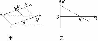 如图甲所示,abcd为导体做成的框架,其平面与水平面成θ角。质量为m的导体棒PQ与ad、bc接触良好,回路的总电阻为R。整个装置放在垂直于框架平面的变化磁场中,磁场的磁感应强度B随时间t变化情况如图乙所示(设图甲中B的方向为正方向)。若PQ始终静止,关于PQ与框架间的摩擦力在 0-t1时间内的变化情况,有如下判断( )