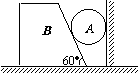 (14分)重150N的光滑球A悬空靠在墙和木块B之间,木块B的重力为1500N,且静止在水平地板上,如图所示,求(1)墙和木块B所受压力各为多少?(2)水平地板所受的压力和木块B所受的摩擦力各为多少?