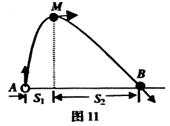 球的运动可看作竖直方向的竖直上抛运动和水平方向的初速YC为零的匀加速直线运动的 合运动)。小球运动的轨迹上A、B两点在同一水平线上,M点为轨迹的最高点。若风力