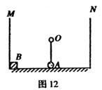 于挡板和绳。现铁块B以初速度v0=10m/s从挡板M处向小球A运动。若铁块和小球均