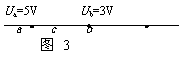 图3所示,a、b、c为电场中同一条水平方向电场线上的三点,c为ab中点.a、b电势分别为Ua