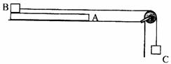 ,最大静摩擦力等于滑动摩擦力,忽略滑轮质量及与轴间的摩擦,起始时使物体都处于静止状态,绳被拉直,B位于A的左端,然后放手,求:g=10m/s2