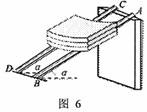 10.在建筑工地上需要将一些建筑材料由高处送到低处,为此工人们设计了如图6所示的简易滑轨:两根圆柱形木杆AB和CD相互平行,斜靠在竖直墙上,如图6所示,把一摞瓦放在两根杆构成的滑轨上,瓦将沿滑轨滑到低处。在实际操作中发现瓦滑到底端时速度较大,有可能被摔碎,为了防止瓦被损坏,下列措施可行的是 ( )