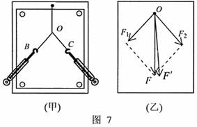 11.(1)(4分)在“验证力的平行四边形定则”的实验中,某同学的实验情况如图7(甲)所示,其中A为固定橡皮筋的图钉,O为橡皮筋与细线的结点,OB和OC为细绳。图7(乙)是在白纸上根据实验结果画出的图。下列说法正确的是 ( )