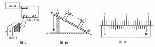 12.(13分)像打点计时器一样,光电计时器也是一种研究物体运动情况的常见计时仪器,其结构如图9所示,a、b分别是光电门的激光发射和接收装置。当有物体从a、b间通过时,光电计时器就可以显示物体的挡光时间。