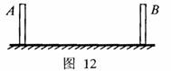 13.(12分)如图12所示为水平固定轨道,A、B为竖直弹性挡板,相距l = 4m,小球自A板处开始,以速度v0 = 4m/s的速度沿导轨向B运动,它与A、B挡板碰撞后均以碰前大小相等的速率反弹回来,且在轨上做减速运动的加速度大小不变,为使小球停在A、B的中点,该小球运动加速度大小应为多少?