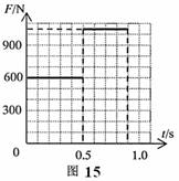 16.(14分)起跳摸高是学生常进行的一项活动,竖直起跳的时间和平均蹬地力的在大小能够反映学生在起跳摸高中的素质。为了测定竖直起跳的时间和平顽强蹬地力的大小,老师在地面上安装了一个压力传感器,通过它可以在计算机上绘出平均压力与时间的关系图象。小亮同学身高1.72m,站间时举手达到2.14m,他弯曲两腿,做好起跳的准备,再用力蹬地竖直跳起,测得他对传感器的压力F与时间t的关系图象如图15所示。已知图中网格间距相等,不计空气阻力,取g = 10m/s2。求小亮同学起跳摸高的最大高度约为多少?