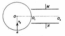 如图所示,在真空中,半径为R的圆形区域内存在匀强磁场,磁场方向垂直纸面向外。在磁场外有一对平等金属板M和N,两板间距离为R,板长为2R,板的中心线O1O2与磁场的圆心O在同一直线上。有一电荷量为q质量为m的带正电的粒子,以速度v0从圆周上的a点沿垂直于半径O1O2并指向圆心O的方向进入磁场,从圆周上的O1点飞出磁场并进入两板间的匀强电场,最后粒子刚好从N板的边缘飞出。(不计粒子重力的影响)