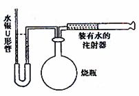 一同学用如图所示装置研究一定质量气体的压强与体积的关系,实验过程中温度保持不变,最初,U形管两臂中的水银面齐平,烧瓶中无水,当用注射器往烧瓶中注入水时,U形管两臂中的水银面出现高度差,实验的部分数据记录在下表。