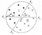 成30°角且平行纸面的方向射入磁场,随后该粒子经过圆心O进入Ⅱ区,最后再从