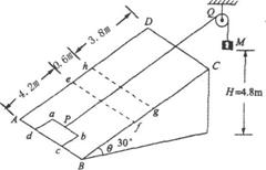 ,在其上放置一矩形金属线框abcd,ab的边长l1=1m,bc的边长l2=0.6m,线框的质量m=1kg,电阻R=0.1Ω,线框通过细线绕过定滑轮与重物相连,细线与斜面平行且靠近;重物质量M=2kg,离地面的高度为H=4.8m;斜面上efgh区域是有界匀强磁场,方向垂直于斜面向上;已知AB到ef的距离为S1=4.2m,ef到gh的距离为S2=0.6m,gh到CD的距离为S3=3.8m,取g=10m/s2;现让线框从静止开始运动(开始时刻,cd边与AB边重合),发现线框匀速穿过匀强磁场区域.求