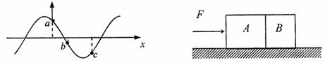 4.一列简谐横波在x轴上传播,某时刻的波形图如图所示,a、b、c为三个质元,a正向上运动。由此可知 ( )