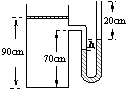 21、(12分)如图所示,一足够高的直立气缸上端开口,用一个厚度不计的活塞封闭了一段高为90cm的气柱,活塞的横截面积为0.01m2,活塞与气缸间的摩擦不计,气缸侧壁通过一个密封接口与U形管相通,密封接口离气缸底部的高度为70cm,气缸与U形管相通处气体体积忽略不计。在图示状态时气体的温度为17℃,U形管两支管水银面的高度差h1为6cm,右支管内水银面到管口的高度为20cm ,大气压强p0=1.0×105Pa保持不变,水银的密度ρ=13.6×103kg/m3。 求: