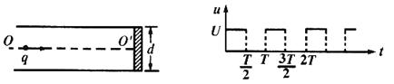 22、(14分)如图所示,两块平行金属板相距为d,加上如图所示的方波形电压,电压的最大值为U,周期为T。现有一束电荷量均为+q、质量为m的正离子束,从与两板等距处的O点沿与板平行的方向连续地射入。设每个离子通过平行板所用的时间均为T(和电压变化的周期相同),且已知所有的离子最后都可以通过两板间的空间而打在右端的靶上。试求离子最后打在靶上的位置范围(即与O′的最大距离和最小距离)。不计重力影响。