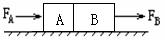 7.如图,在光滑水平面上放着紧靠在一起的AB两物体,B的质量是A的2倍,B受到向右的恒力FB=2N,A受到的水平力FA= (9-2t) N,(t的单位是s)。从t=0开始计时,则( )