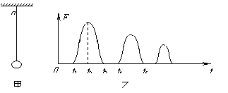 中拉力F随时间t变化的图象。实验时,把小球举高到绳子的悬点O处,然后放手让小球自由下落,如图甲。由此图
