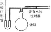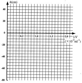 .(2)(6分)一同学用下图装置研究一定质量气体的压强与体积的关系实验过程中温度保持不变.最初,U形管两臂中的水银面齐平,烧瓶中无水.当用注射器往烧瓶中注入水时,U形管两臂中的水银面出现高度差.实验的部分数据记录在右表.(1)根据表中数据,在右图中画出该实验的h-l/V关系图线.(2)实验时,大气压强P0=__________cmHg.