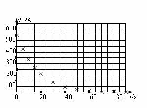 ( 8分 )如图1-7-44,是用高电阻放电法测电容的实验电路图。其原理是测出电容器在充电电压为U时所带的电荷量Q,从而求出其电容C。该实验的操作步骤如下:⑴按电路图接好实验电路;⑵接通电键S,调节电阻箱R的阻值,使微安表的指针接近满刻度.记下这时的电压表读数U0=6.2V和微安表读数I0=490μA;⑶断开电键S并同时开始计时,每隔5s或10s读一次微安表的读数i,将读数记录在预先设计的表格中;⑷根据表格中的12组数据,以t为横坐标,i为纵坐标,在坐标纸上描点(图1-7-45中用“×”表示).根据以上实验结果和图象,可以估算出当电容器两端电压为U0时该电容器所带的电荷量Q0约为_________C,从而算出该电容器的电容约为________F.