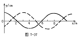 16(15分).图7-37所示为t1,t2两时刻波的图象.t1=0,t2=0.5秒,若3T<t2-t1<4T,问
