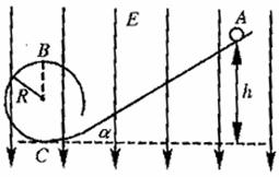 ,匀强电场的场强大小为E,斜轨道的倾角为α(小球的重力大于所受的电场力)。