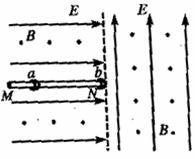 (20分)如图所示,在虚线左右两侧均有磁感应强度相同的垂直纸面向外的匀强磁场和场强大小相等方向不同的匀强电场,虚线左侧电场方向水平向右,虚线右侧电场方向竖直向上。左侧电场中有一根足够长的固定细杆MN,N端位于两电场的交界线上。a、b是两个质量相同的小环(环的半径略大于杆的半径),a环带电,b环不带电,b环套在杆上的N端处于静止。将a环套在杆上的M端由静止释放,a环先加速后匀速运动到N端,a环与b环在N端碰撞并粘在一起,随即进入右侧场区做半径为r=0.10m的匀速圆周运动,然后两环由虚线上的P点进入左侧场区。已知a环与细杆MN的动摩擦因数μ=0.20,取g=10m/s2。求