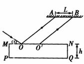 某同学用如下方法测玻璃的折射率:先将平行玻璃砖固定在水平桌面的白纸上,画出两侧界面MN、PQ(MNPQ面平行于桌面),在玻璃砖的一侧用激光照射,在光源同侧且与MN平行的光屏上得到两光点A、B,两光线的位置如图所示.测入入射光线与界面的夹角α=30°,光屏上两光点之间的距离L=3.0cm,玻璃砖的厚度h=2.0cm,求玻璃的折射率.