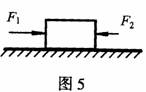 15.如图5所示,放在粗糙水平桌面上的木块,质量m = 2.0kg,同时受到F1 = 8.0N、F2 = 3.0N的水平推力作用处于静止状态。若只撤去F1,则木块 ( )
