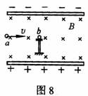 如图8所示,带电平行金属板相互正对水平旋转,两板间存在