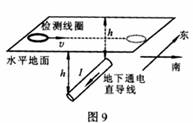 面内,从距直导线很远处由北向南沿水平地面通过导线的止方并移至距导线很远处的过程中,俯视检测线圈,其中的感应电流的方向是 ( )