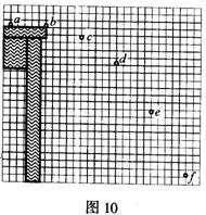(1)某同学利用闪光照相研究物体的平抛运动,他拍摄了小球沿水平桌面运动并抛出的闪光照片,如图10所示。若图中每一正方形小格的边长均表示1.00cm,照相机相邻两次交兴的时间间隔均为0.50s。根据图10中的记录,可计算出小球做平抛运动的初速度大小为